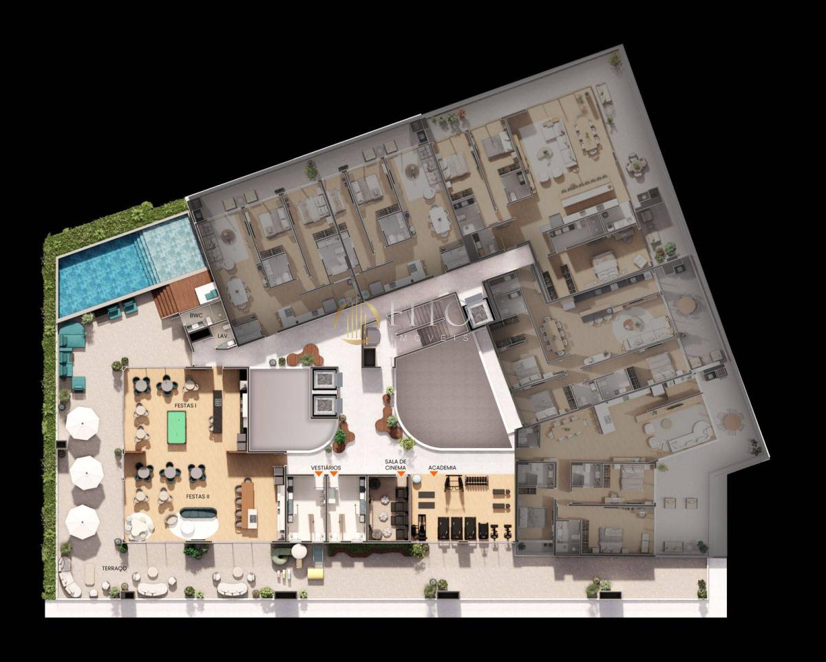 • Infraestrutura completa no rooftop, incluindo piscina, academia, salões de festas integráveis e sala de cinema, pensados para proporcionar momentos únicos de lazer e convivência.